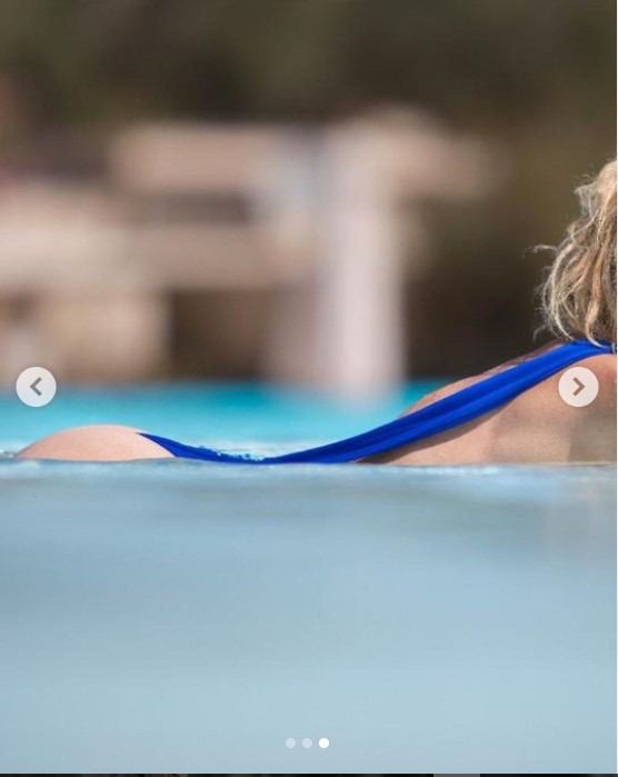 Di recente infatti è stata notata con un bikini blu estremamente aderente e a pezzo unico, inizialmente facendosi vedere una volta uscita dalla piscina nel fronte davanti, per poi postare un’altra fotografia nella quale si vedeva unicamente il suo lato b uscire dall’acqua.