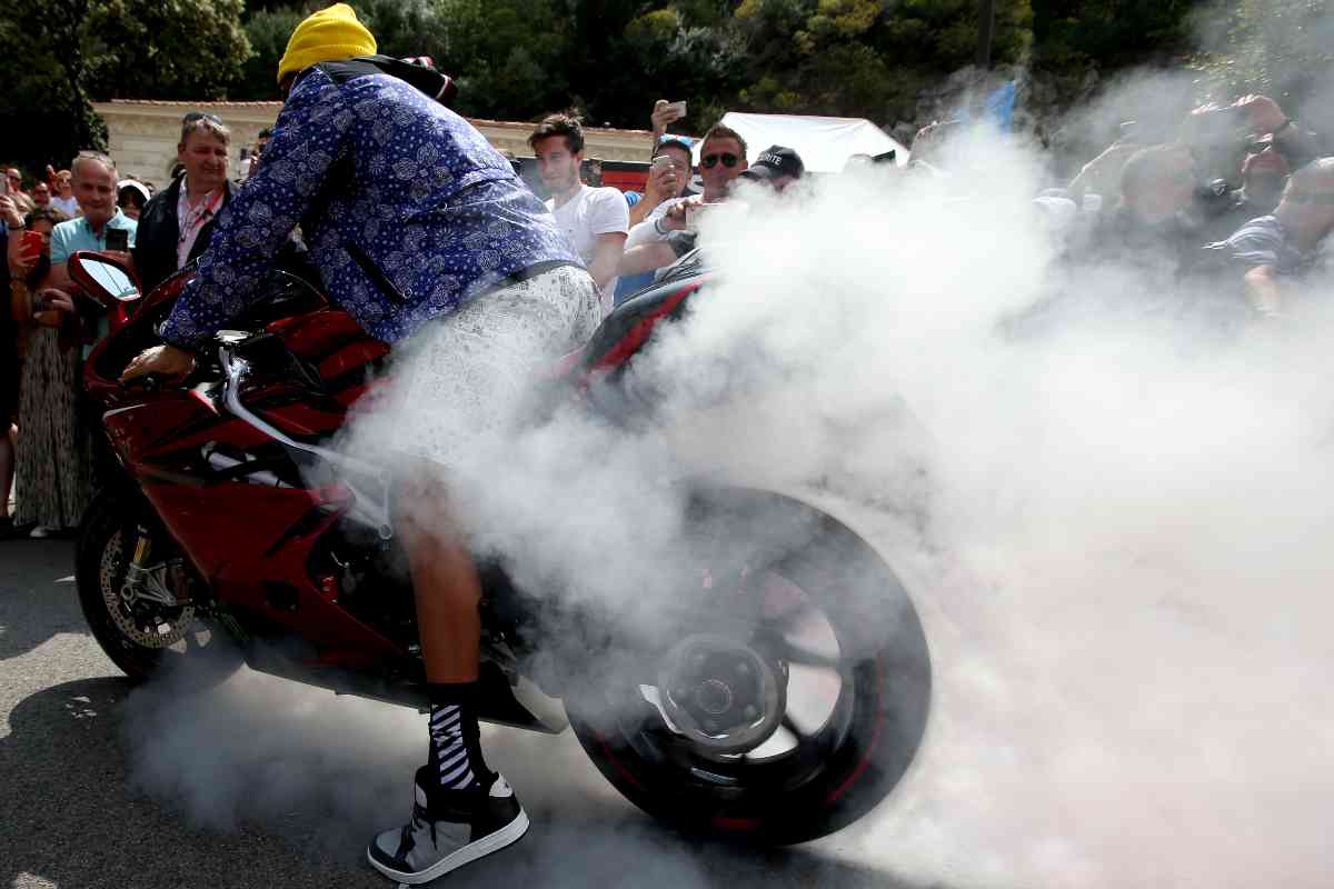 L’11 dicembre 2019, in un test congiunto a Valencia, Lewis Hamilton si tolse la soddisfazione di testare la Yamaha YZR-M1 di Valentino Rossi. Quest’ultimo, a sua volta, provò la Mercedes W08 dell’asso inglese. Nel suo box Lewis custodisce una moto italiana molto esclusiva, parliamo della MV Agusta F4 LH44. La sigla finale sta per Lewis Hamilton 44, il numero utilizzato in pista dal campione. La moto è stata sviluppata grazie alla collaborazione del nativo di Stevenage con il Centro Ricerche Castiglioni, come accaduto anche per una edizione limitata della Brutale. La F4 LH44 ha una cilindrata di 998cc, motore 4 cilindri con 212 CV e può raggiungere la velocità massima di 302 km/h. Un gioiello che Hamilton ha sfoggiato (foto in basso) anche a Montecarlo qualche anno fa.