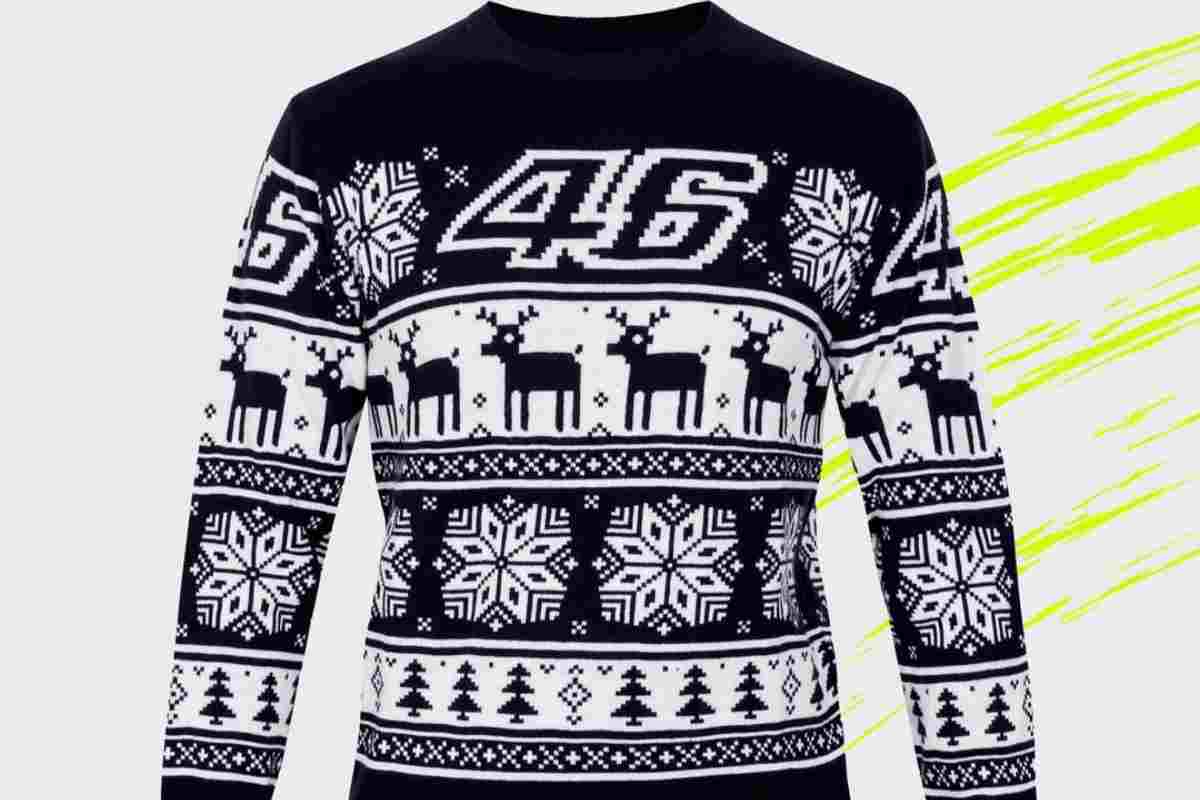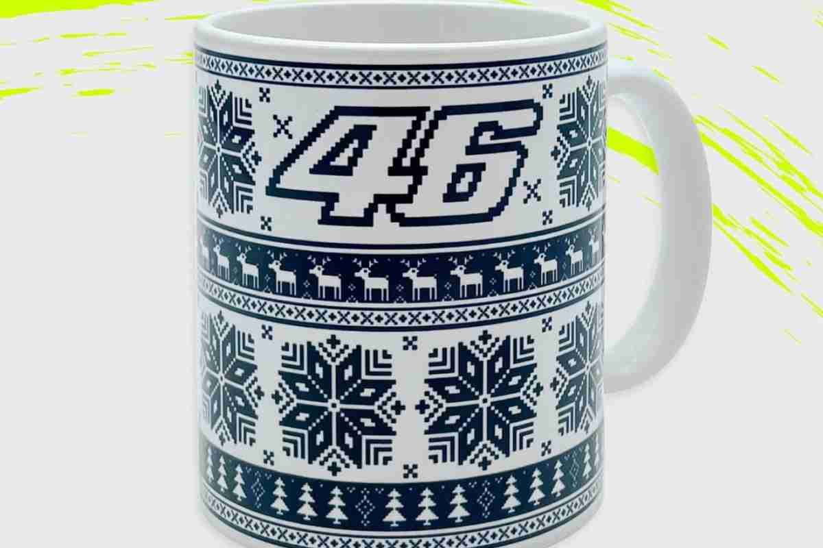 Il maglioncino con tanto di renne, neve ed alberi natalizi, ha un grande ’46’ sul petto. Bianca e blu invece la shirt, con le stesse fantasie e lo stesso numero con la grafica che è solo di Rossi. C’è poi la felpa, con la stessa stampa della shirt, a colori invertiti. Ma i possibili regali di Natale non sono finiti. Anche un set con sciarpa e cappello o i calzini ed i guanti, sono stati creati per la Christmas Collection 46. E se volessimo tenerne un pezzo in casa? Ecco allora la tazza e le palline per l’albero. C’è proprio tutto.